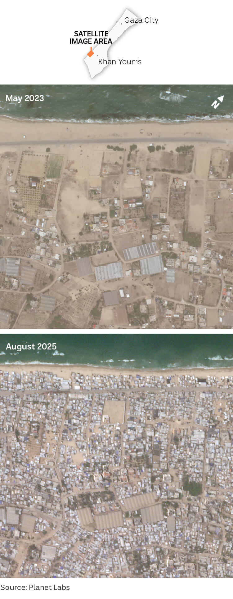 Evacuation data used in this story's maps was sourced from the United Nations Office for the Coordination of Humanitarian Affairs. The satellite image of Rafah is courtesy of Planet Labs.