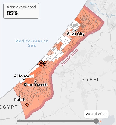 There is now just a sliver of Gaza left untouched by "evacuation orders" issued by the IDF.